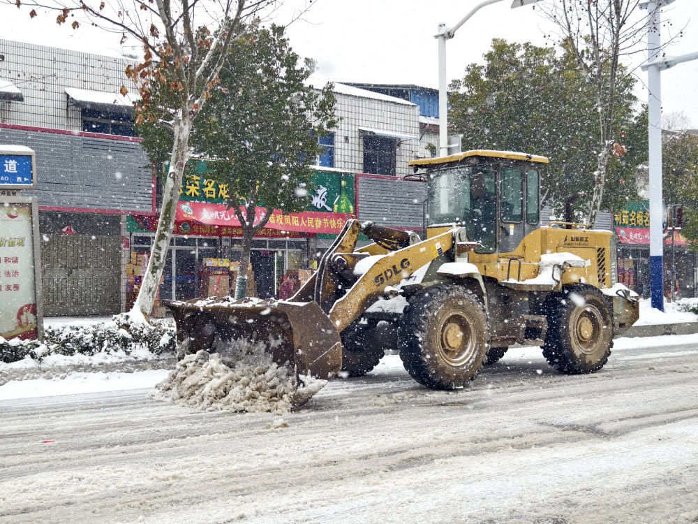 在安徽省滁州市凤阳县,继1日降下大雪后,3日一早再次降雪。在凤阳县城,记者看到,才铲完雪不久的主干道,再次被积雪和冰覆盖,车辆行驶缓慢,铲雪车正在路面上作业,不少社区工作人员也在重要路段撒融雪剂。