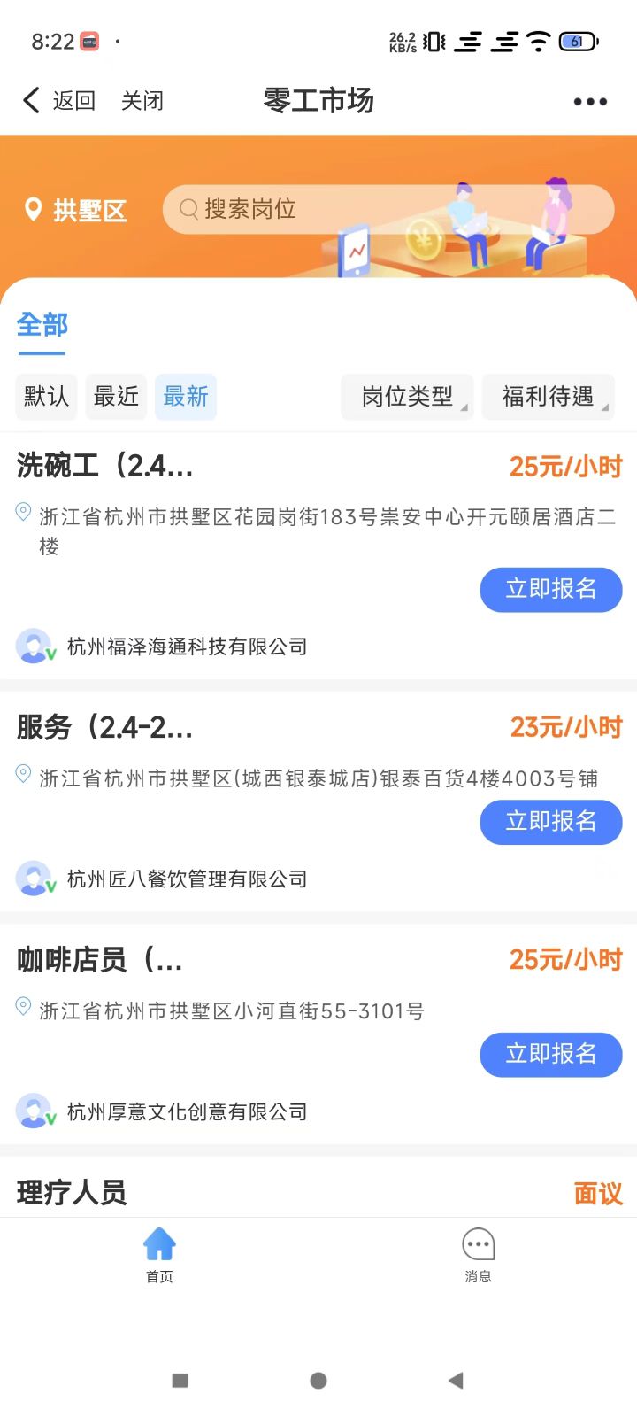 “这两天,在浙里办的‘浙里找零工’专区就上线了120余个岗位。”康桥街道零工市场的负责人表示,主要集中在仓库分拣、超市、酒店、护理等一些岗位,比如杭州某本地大型连锁超市就一口气发布了60余个岗位,包括分拣员、服务员等等。
