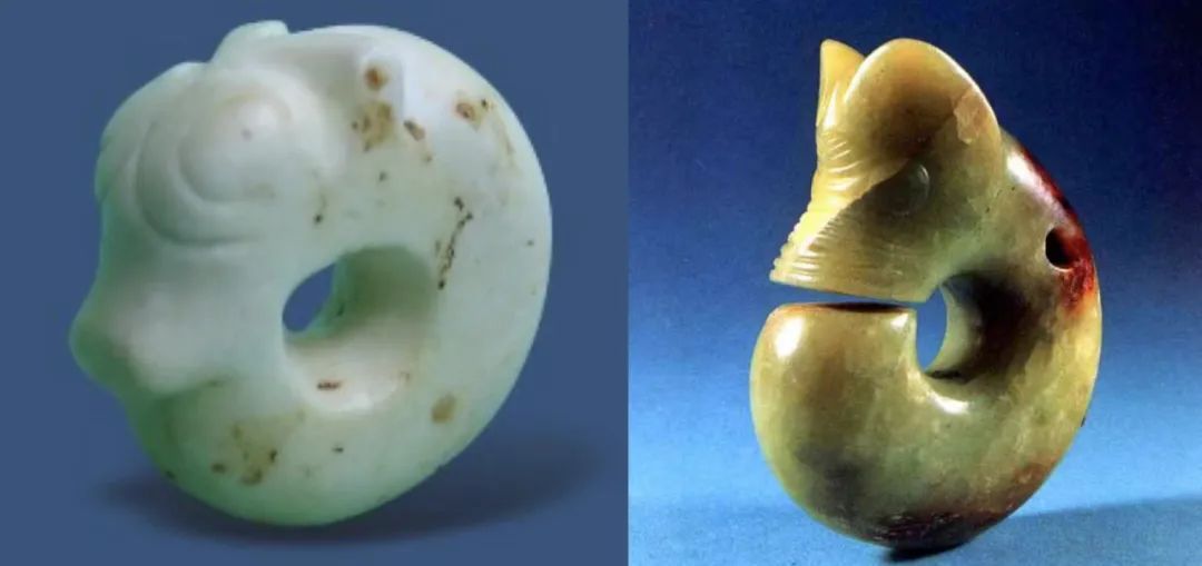 良渚文化时期余杭星桥后头山玉龙(左图)红山文化玉龙(右图) 图源:“杭州考古 发现杭州”微信公众号