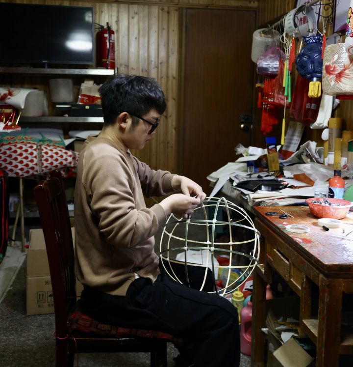 竹编骨架、棉布裱糊、手工绘画……一个龙灯,至少需要3个人分工做20多天。年前的工作节奏,基本是“每天早上6点起床,一直做到第二天凌晨1点”,但他说,“我享受干活的过程。”
