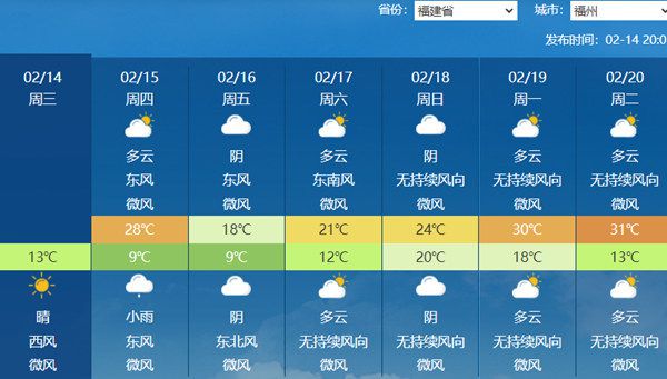 福州19日和20日最高气温已预报到了30℃,足见回暖之强!