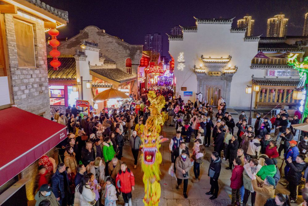 舞龙巡游在安徽芜湖古城花街上演(2024年2月10日摄)。新华社发