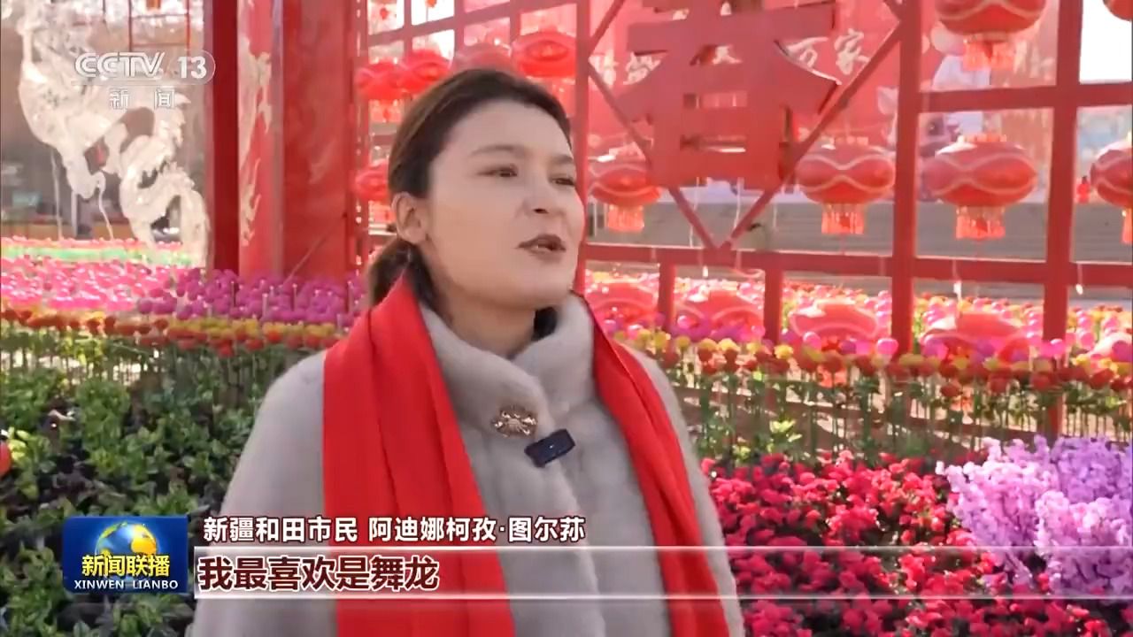 新疆和田市民 阿迪娜柯孜·图尔荪:我最喜欢是舞龙,红红火火,也祝福和田红红火火、越来越美好。