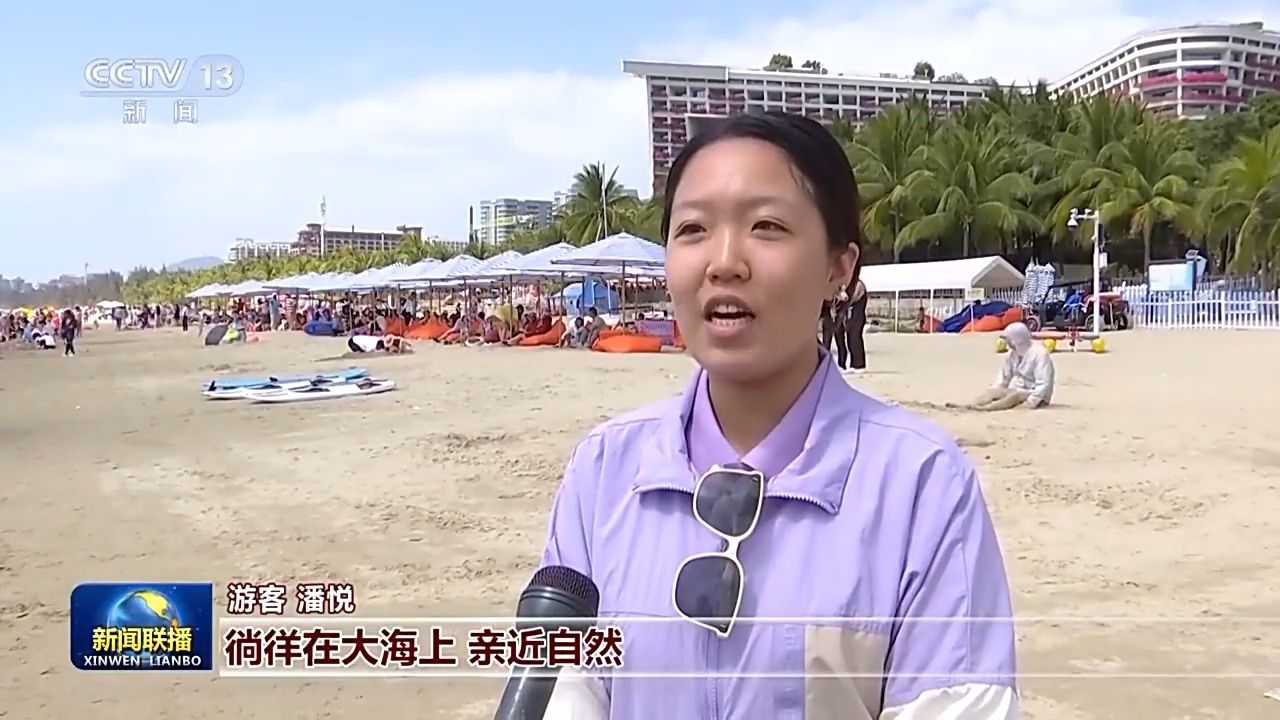 游客 潘悦:刚刚体验了海上摩托艇和水上飞人等项目,乘风破浪的感觉很刺激,徜徉在大海上亲近自然,特别满足、幸福。