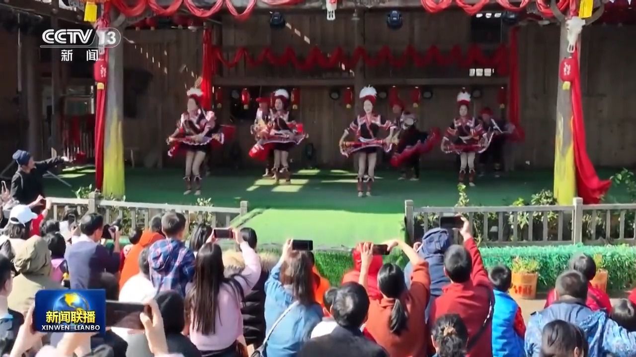锦绣中国年,各族群众载歌载舞、热闹过节。在贵州册亨,乡亲们把欢庆富足的生活搬上舞台,布依竹鼓舞、山歌等节目轮番上场精彩纷呈。在新疆和田,14支社火表演队带来舞狮、扭秧歌、碟子舞、灯笼舞等特色表演,赢得阵阵喝彩。