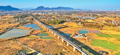 春节假期,浙江绍兴,一列复兴号动车组列车正在行驶。