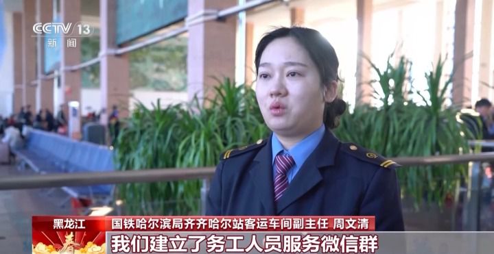 国铁哈尔滨局齐齐哈尔站客运车间副主任 周文清:我们建立了务工人员服务微信群,及时了解了他们的出行时间、人数和批次,随时根据需求进行协调,从初五开始,有11批务工人员进行返岗。
