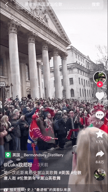“伦敦刮起英歌舞风”等话题
