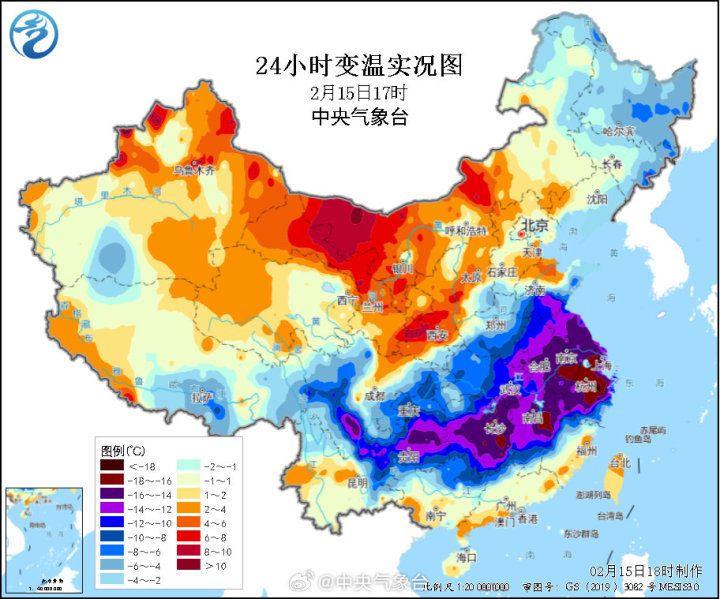 龙年首场寒潮将带来大降温。图源:中央气象台