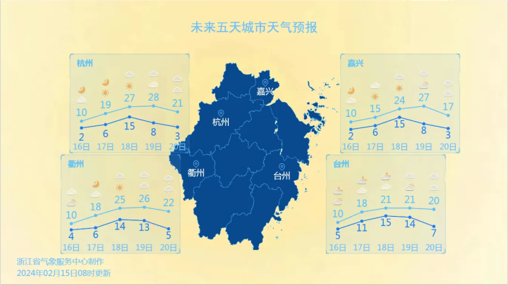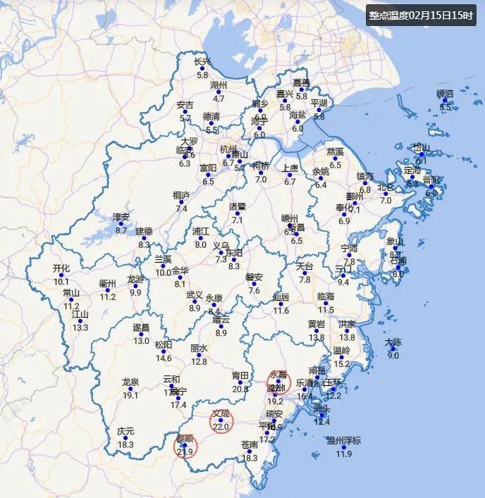 2月15日,浙江南北温差大。图源:浙江天气