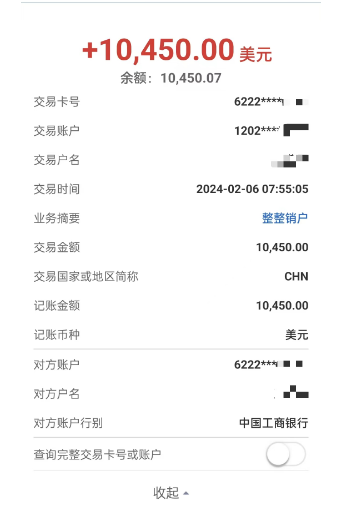 2月初,李兵1万美元的一年期存款利率到期。“当时是在工行办的美元存款,年利率4.5%,也就是450美元的利息。”李兵说。而2023年2月初的时候,美元对离岸人民币的汇率还只有6.8左右。