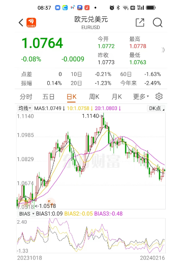 去年11月到12月,美元对人民币曾走出一波下跌行情,美元对离岸人民币从7.34附近一路跌到7.0876,对在岸人民币最低跌至7.0865。“本来想等美元对人民币跌破7的时候先换一二万美元,没想到进入2024年,美元反而掉头震荡向上。”