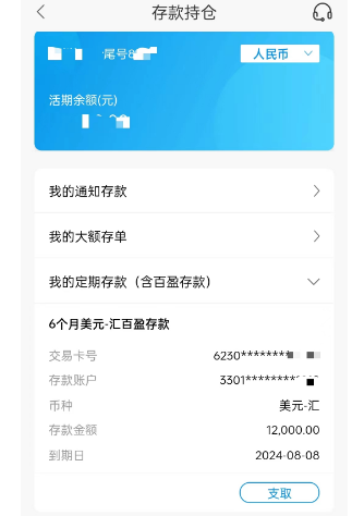 一年期美元存款到期后,李兵手头上总共有1.2万多美元。因为暂时没有急需的用途,他就开始打听有没有利率较高的美元定期存款,结果最高的两家,一家有4.9%的年化存款利率,一家有5%左右的年化存款利率。最后,李兵选了后一家半年期存款。