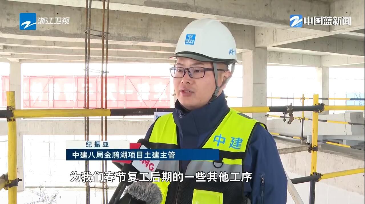 中建八局金漪湖项目土建主管纪振亚说:“为我们春节复工后期的一些其他工序打下了扎实的基础,消防、机电、暖通、精装等这些工序可以全面展开,我们计划是今年年底基本完工。”