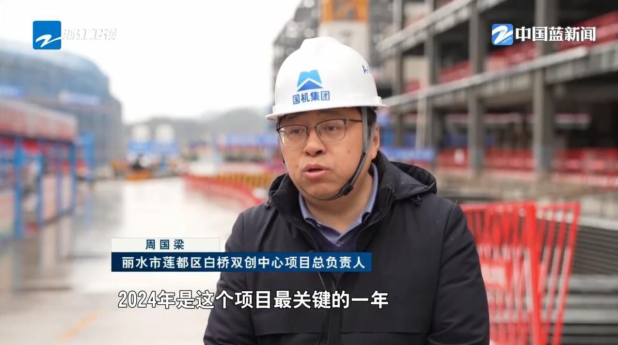 丽水市莲都区白桥双创中心项目总负责人周国梁说:“2024年是这个项目最关键的一年,我们在2月底要把办公楼的钢结构主体结构全部完成。”