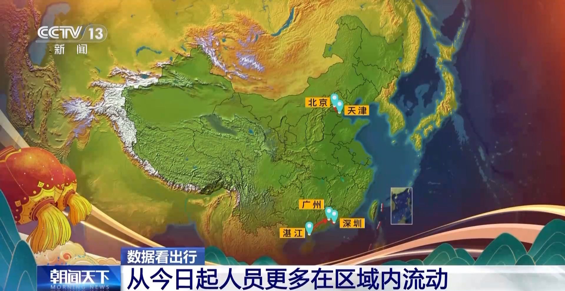 从热门路线方面看,节前流出人口较多的大城市,现在成为返程的主要流入地,而与前两天跨区域流动占主导不同的是,今天开始,广州到深圳、天津到北京、湛江到广州等成为最热门的线路,区域内的人员流动将更加频繁。