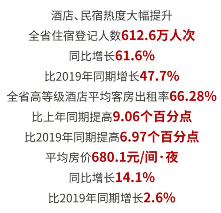 日均过夜游人数1041.5万人次,同比增长49.7%,比2019年同期增长25.1%;游客人均消费1443元,同比增长10.8%,比2019年同期增长3.8%。