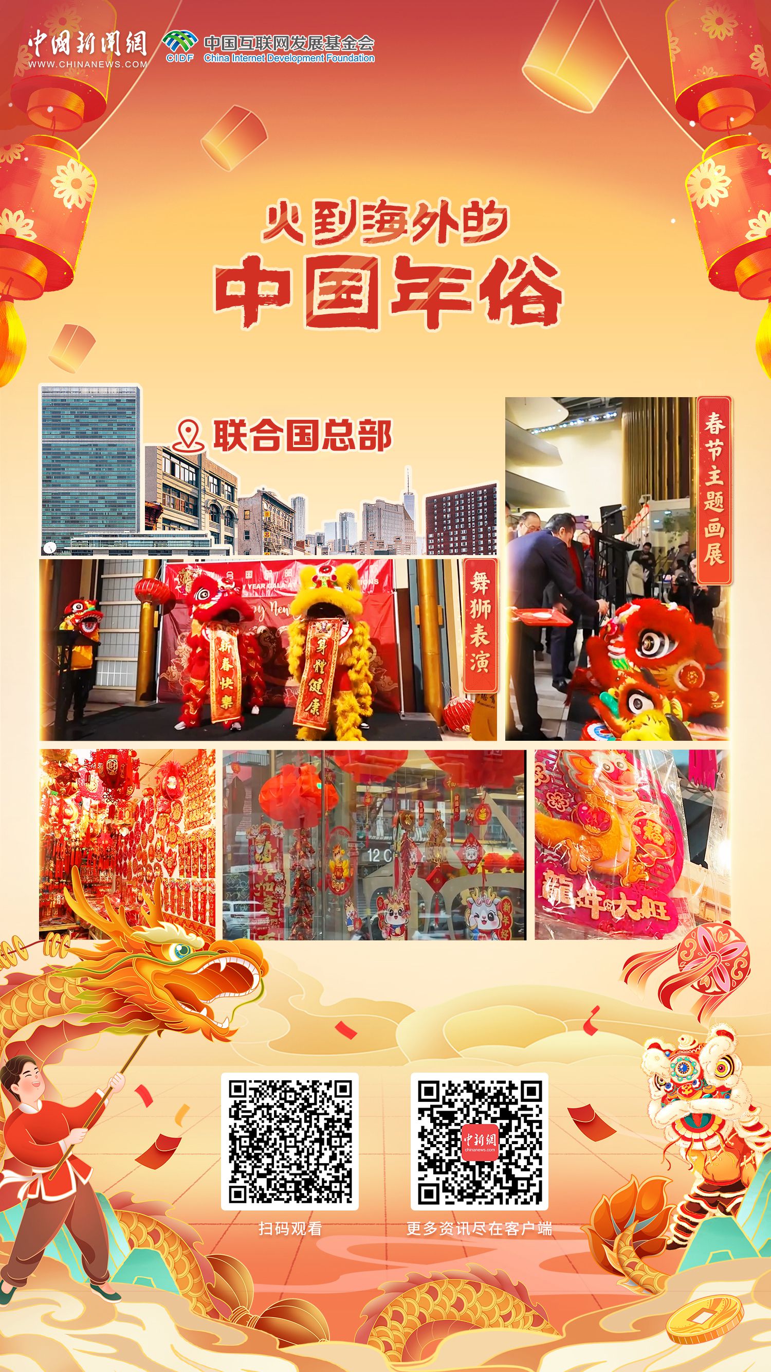 2023年末,春节(农历新年)被确定为联合国假日。今年春节,联合国总部是如何过年的?在纽约联合国总部近期举办的春节联欢晚会上,舞狮等传统年俗纷纷亮相;“龙腾四海 共迎新春”画展,融合全球各地艺术元素,以多种艺术手法创新演绎中国龙形象。