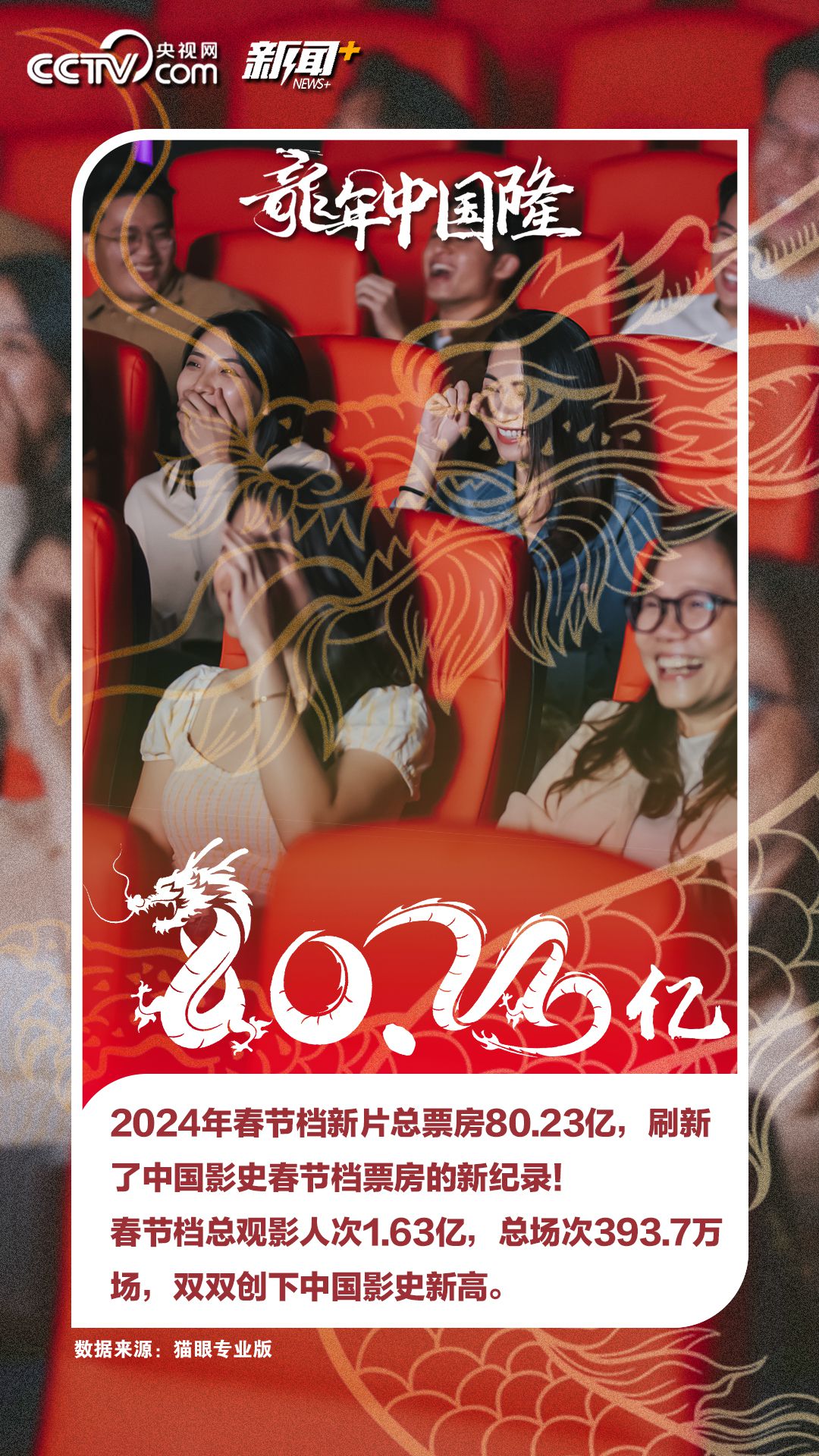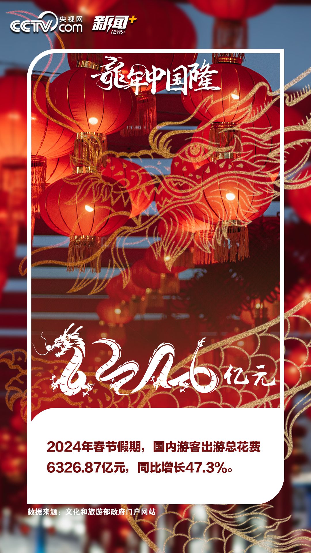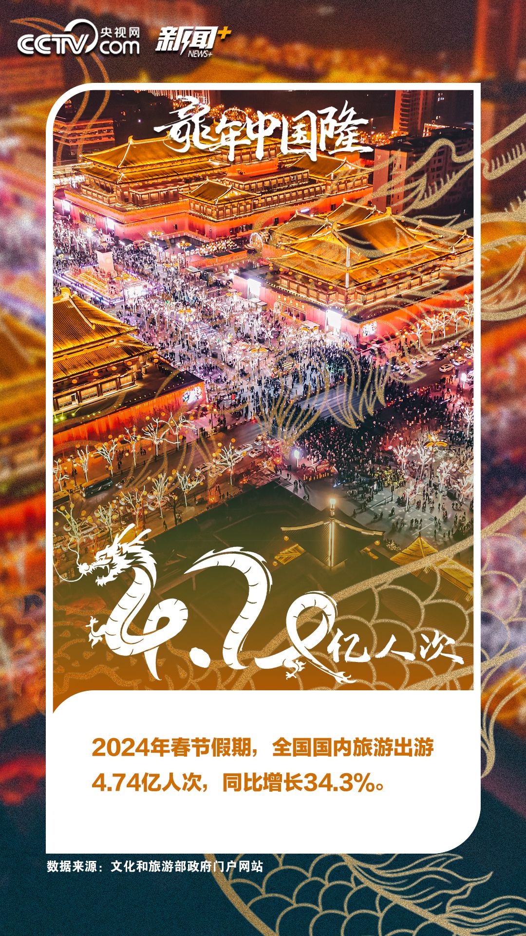 新春的中国,灯火璀璨,红火热闹,处处涌动着经济的生机与活力。振奋龙马精神,龙年消费市场迎来“开门红”! 2024年春节假期,全国文旅消费市场火热,市场活力持续释放,全国国内旅游出游4.74亿人次。春节国内游客出游总花费6326.87亿元。欢喜过年文化味浓,传统文化出彩出新,春节档新片总票房突破80.23亿,刷新中国影史春节档票房的新纪录!春节档总观影人次1.63亿,总场次393.7万场,双双创下中国影史新高。