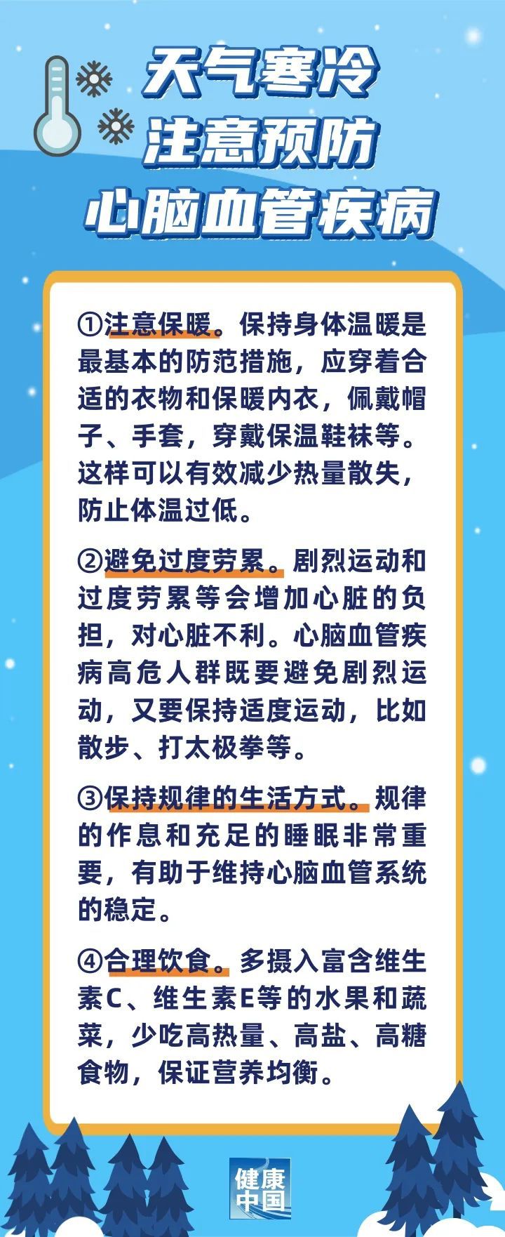 寒冷天气可能会对心脑血管系统造成不良影响,心脑血管疾病患者及高危人群需要特别关注。