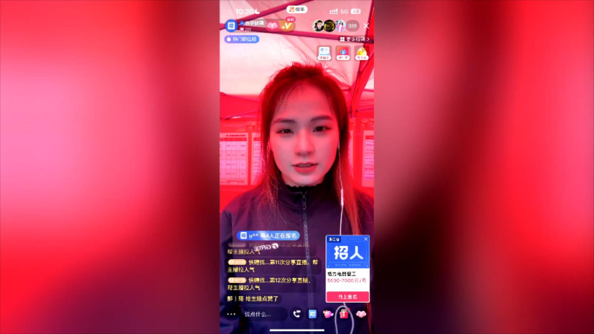 除了线下招聘,“快手快聘”服务号也开启了线上直播带岗,6家企业参与线上直播,共吸引10万人次在线观看。此外,活动现场还设置了职业指导区,有专业的职业指导师现场支招,答疑解惑。