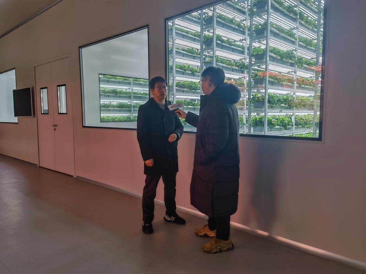 刘威博士调整参数,灯带切换出蓝色、红色、白色等不同的颜色。他告诉记者,太阳光有无线电波、红外线、可见光、紫外线等多个波谱范围,各类农作物对光有不同的需求。他们过滤掉不需要的波段,调配出最适合作物生长的“光配方”,模拟出“日出”与“日落”。“偏瓜果类的蔬果,它的蓝光成分会更多一点,会促进它的果实的生长。然后红光的成分比例高的话,会促进它的叶片的生长。我们是在做超越自然环境的控制系统,来发挥植物生长的潜能,让植物更高效地生长。”