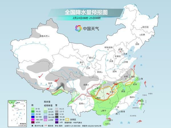 受持续阴雨雪天气影响,南方大部气温偏低的状态将延续至27日前后。尤其是长江中下游到贵州一带气温偏低更为明显,部分地区较常年同期偏低8℃至10℃。像是合肥,未来五天最高气温都在冰点附近徘徊,而常年2月下旬的平均最高气温为11.7℃,公众请注意做好保暖工作,取暖注意用火、用电、用气安全。