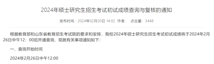 山东师范大学考研初试成绩,查询时间为2月26日12点起。