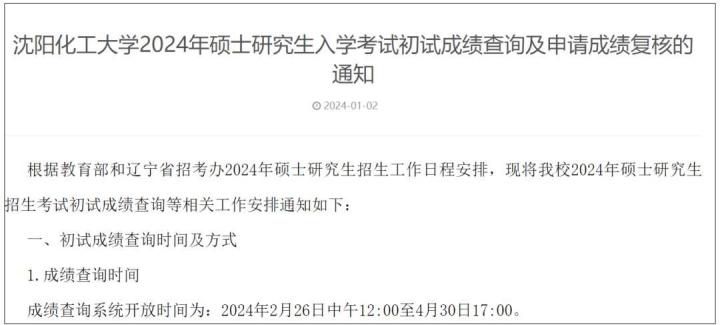 沈阳化工大学考研初试成绩查询系统,开放时间为2月26日中午12点至4月30日17点。