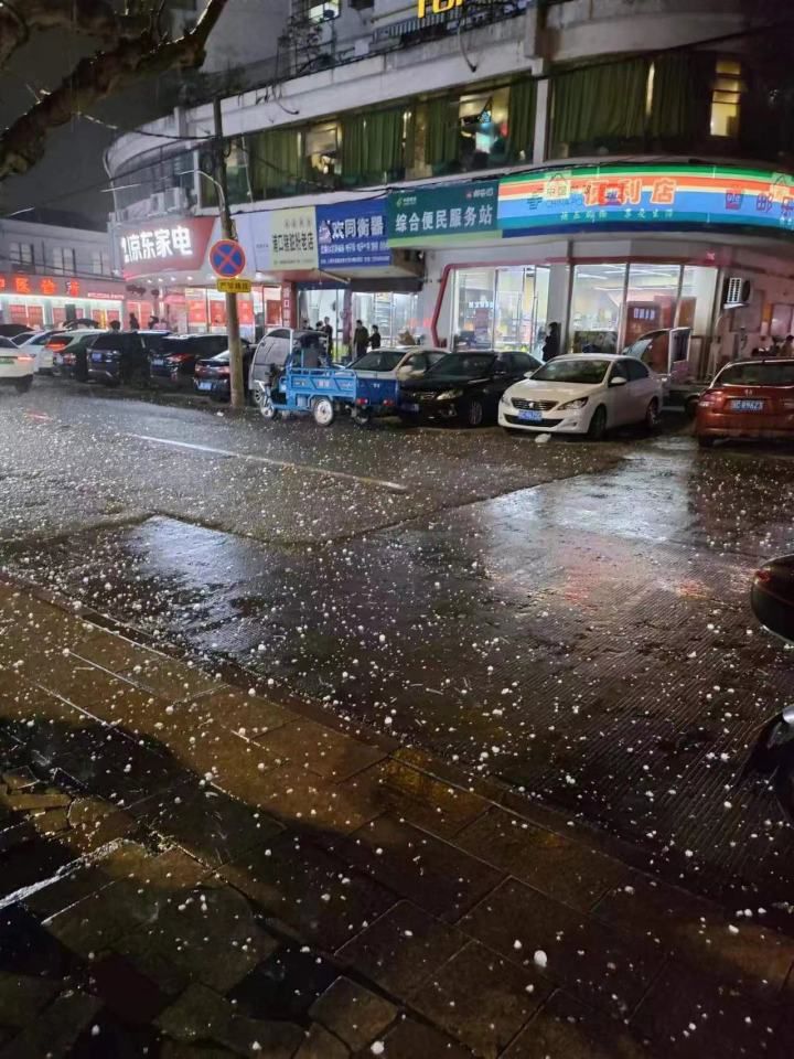永嘉街头的冰雹 图源:潮新闻此前报道