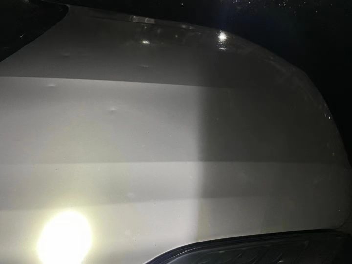 冰雹把室外的汽车砸出坑 图源:潮新闻此前报道,受访者供图