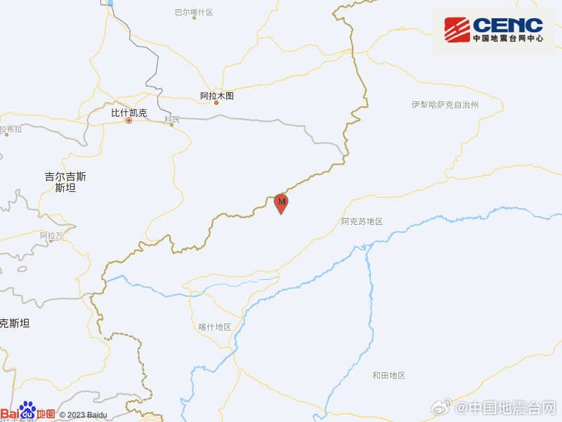 中国地震台网正式测定:02月24日06时58分在新疆克孜勒苏州阿合奇县(北纬41.12度,东经78.54度)发生5.3级地震,震源深度10千米。