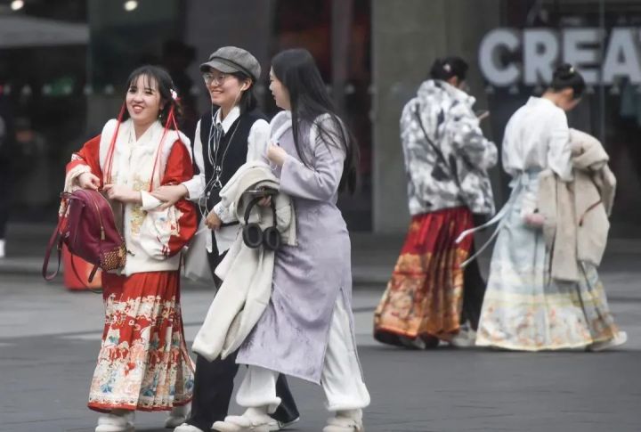 杭州不少市民游客穿着传统汉服出行 图源:“央广网”微信公众号