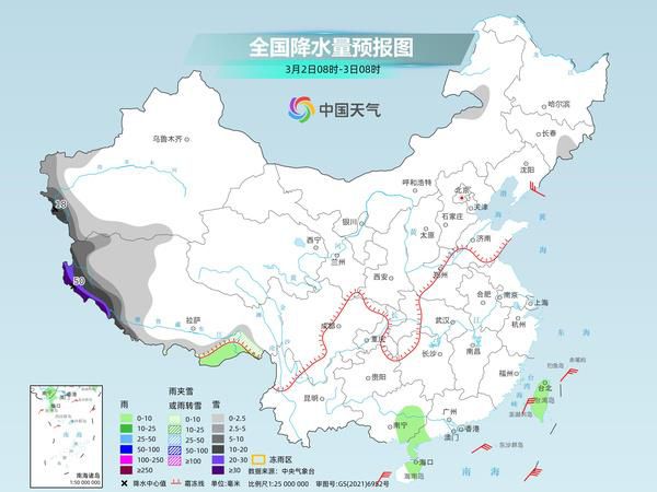 根据中央气象台预报,今天,新疆南疆西部山区、西藏西部等地部分地区有中到大雪,其中,新疆南疆盆地、西藏西部等地部分地区有暴雪,西藏西部局地有大暴雪或特大暴雪(30~45毫米)。西南地区东部、江南东部、华南中东部、台湾岛等地部分地区有小到中雨。