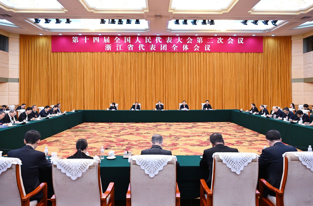 6日上午,浙江代表团举行全体会议,传达学习习近平总书记在参加十四届全国人大二次会议江苏代表团审议时的重要讲话精神。