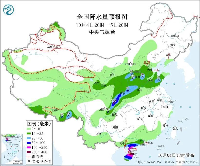 1、4日20时至5日20时,四川盆地东北部、陕西南部、山西中南部、河北南部、山东中部、河南西部、华南南部、海南岛、西藏东南部等地部分地区有大到暴雨,其中,四川盆地东北部、广东西南部沿海、海南岛北部等地部分地区有大暴雨,海南岛东北部局地特大暴雨。