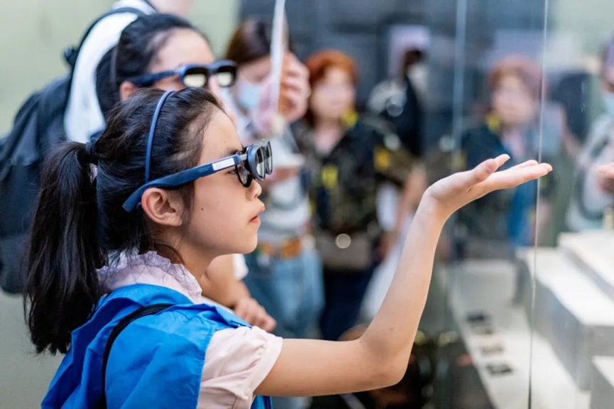 访客戴AR眼镜在良渚博物院体验。良管委供图