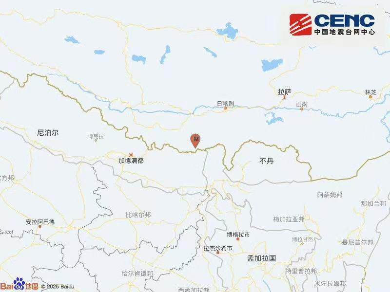 中国地震台网正式测定:10月31日07时46分,在西藏日喀则市定结县(北纬28.04度,东经87.75度)发生3.1级地震,震源深度10公里。