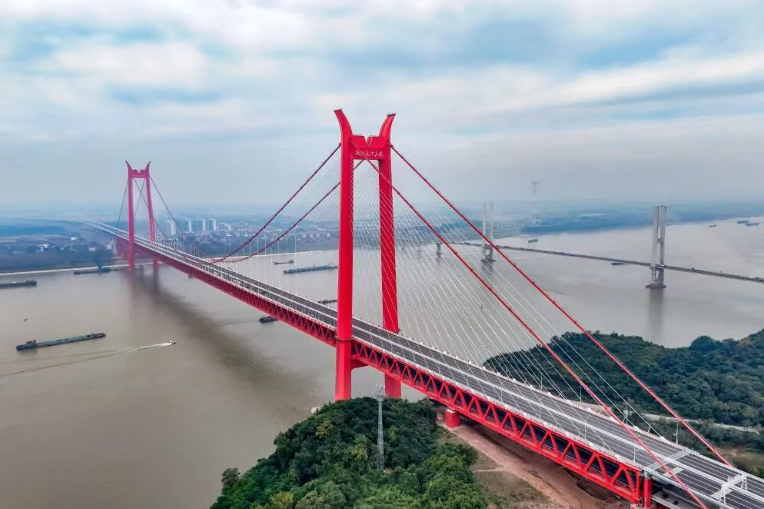 5、6日,我国首座双层斜拉—悬索协作体系大桥——铜陵长江三桥正式通车。