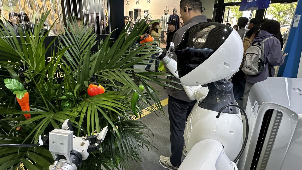 农业场景下,机器人穿上“电子皮肤”采摘水果 记者李心怡 摄