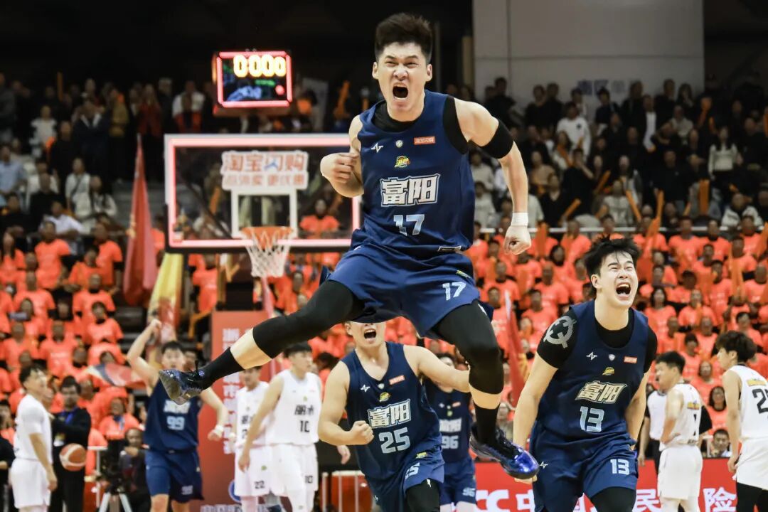 2025年11月28日晚,浙BA城市争霸赛B组迎来一组焦点对决,丽水队和富阳队比赛最后的读秒阶段,富阳队17号运动员章佳飞命中关键投篮后忘情庆祝 图源:潮新闻客户端
