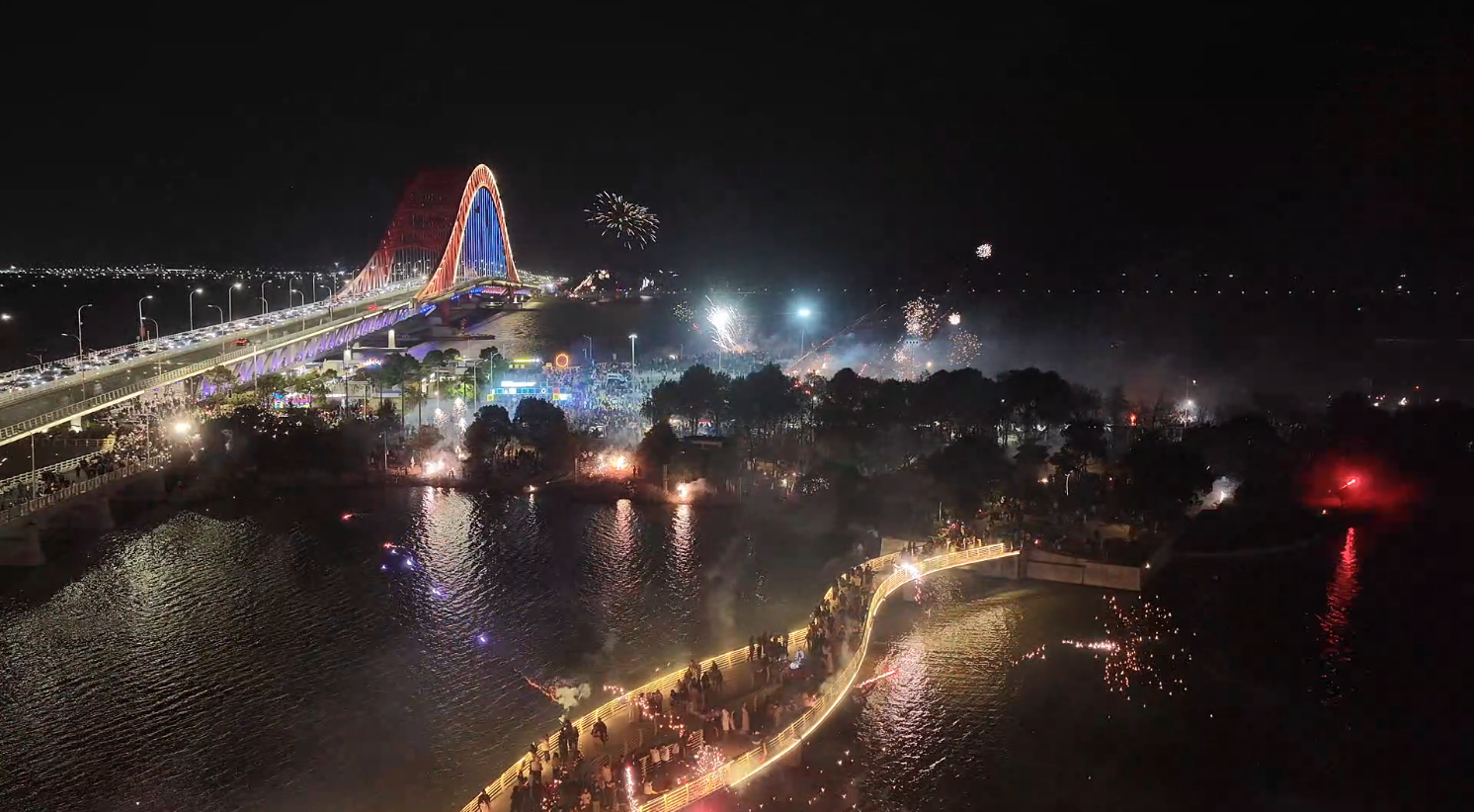 随着夜幕降临,宁波北仑的梅山红桥边聚集了越来越多前来跨年的市民,共同迎接新年。当零点钟声响起,各式各样、绚丽多姿的烟花在夜空中绽放,与红桥相互辉映,现场五彩斑斓、璀璨如画。