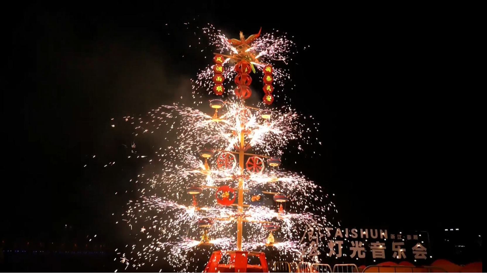 在温州泰顺,被誉为“非物质文化遗产活化石”的药发木偶戏震撼登场。10分钟的表演里,木偶在火药推动下演绎“马跃新元”的古诗,在夜空中攀爬、旋转,花火如星雨垂落,生动演绎出“东风夜放花千树”的东方浪漫。
