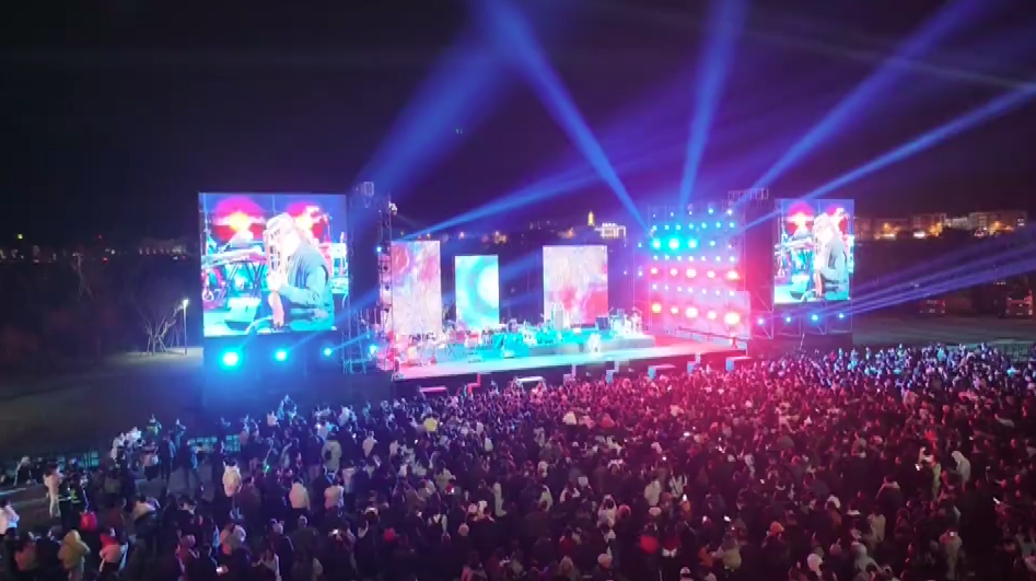 在永嘉的楠溪江跨年音乐嘉年华,人们在欢歌中共迎2026的到来。乐迷们纷纷围聚舞台前方,循着音乐的节拍挥舞手臂与旗帜,长达数小时的音乐盛宴持续“燃炸”全场。
