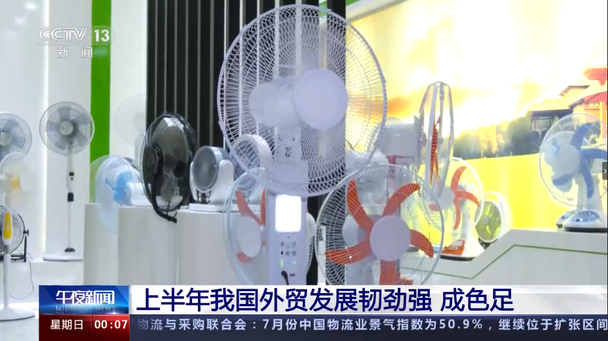 8月5日,央视《新闻联播》播出《上半年我国外贸发展韧劲强 成色足》,报道了今年上半年,在出口面临较大外需压力的背景下,我国外贸顶住了压力,稳住了规模,提升了质量,呈现出韧性和新成色。其中,跨境电商数据显示,深圳、东莞、宁波生产的消夏家电产品今年热销全球,储能电扇、充电桩等节能环保产品尤其受到海外买家青睐。