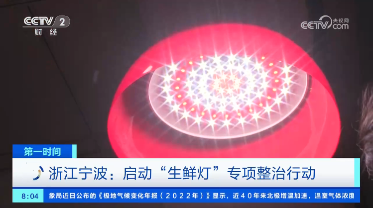 8月6日,央视《第一时间》栏目播出报道《浙江宁波:启动“生鲜灯”专项整治行动》,关注宁波正逐步对市场里不符合规定的“生鲜灯”进行更换,下一步还会将灯具使用纳入经营户信用评价体系。