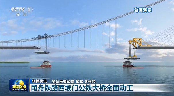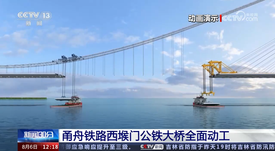 8月6日,央视《新闻联播》栏目播出报道《甬舟铁路西堠门公铁大桥全面动工》,关注宁波至舟山铁路关键控制性工程——甬舟铁路西堠门公铁大桥日前全面动工,它是目前世界最大跨径的公铁大桥。甬舟铁路正线长76.4公里,预计2028年建成。届时,舟山将结束不通火车的历史。