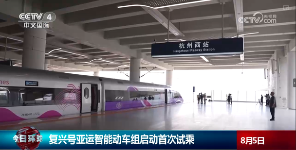 8月4日、5日,央视《新闻联播》《今日环球》《新闻直播间》《中国新闻》《朝闻天下》《经济信息联播》栏目先后播出《复兴号亚运智能动车组启动首次试乘》,报道了专为杭州第十九届亚运会量身定制的复兴号亚运智能动车组4日在杭州西站启动了首次试乘。亚运列车将在亚运会赛事期间承担重要的交通转运功能,串联杭州与宁波、温州、湖州、绍兴、金华五座亚运协办城市。