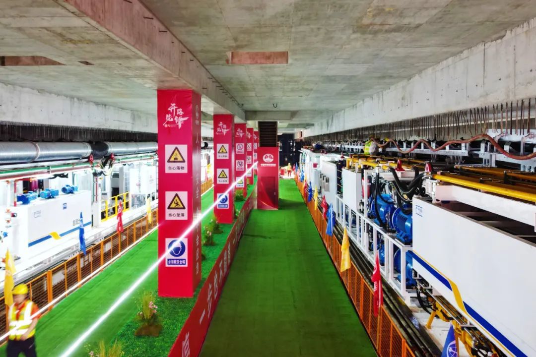 此次始发的“天宫1号”盾构机整机长度为85米,推力达到4086吨,最大掘进速度可达每分钟80毫米。