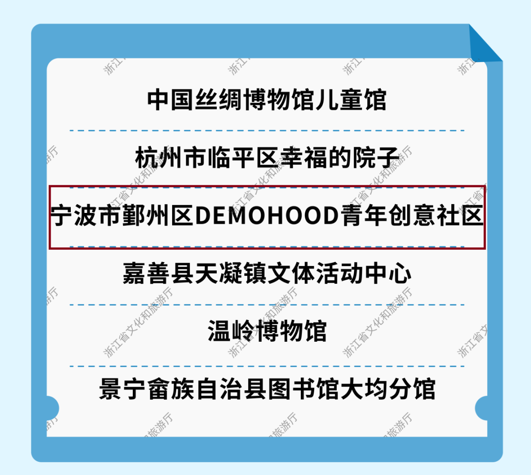 今天,小编从市文广旅游局获悉,由浙江省文化和旅游厅举办的“浙江省最美公共文化空间”获奖名单揭晓,宁波有3处公共文化空间入选,分别是宁海东方艺术博物馆、华茂艺术教育博物馆以及DEMOHOOD青年创意社区。一起来看↓